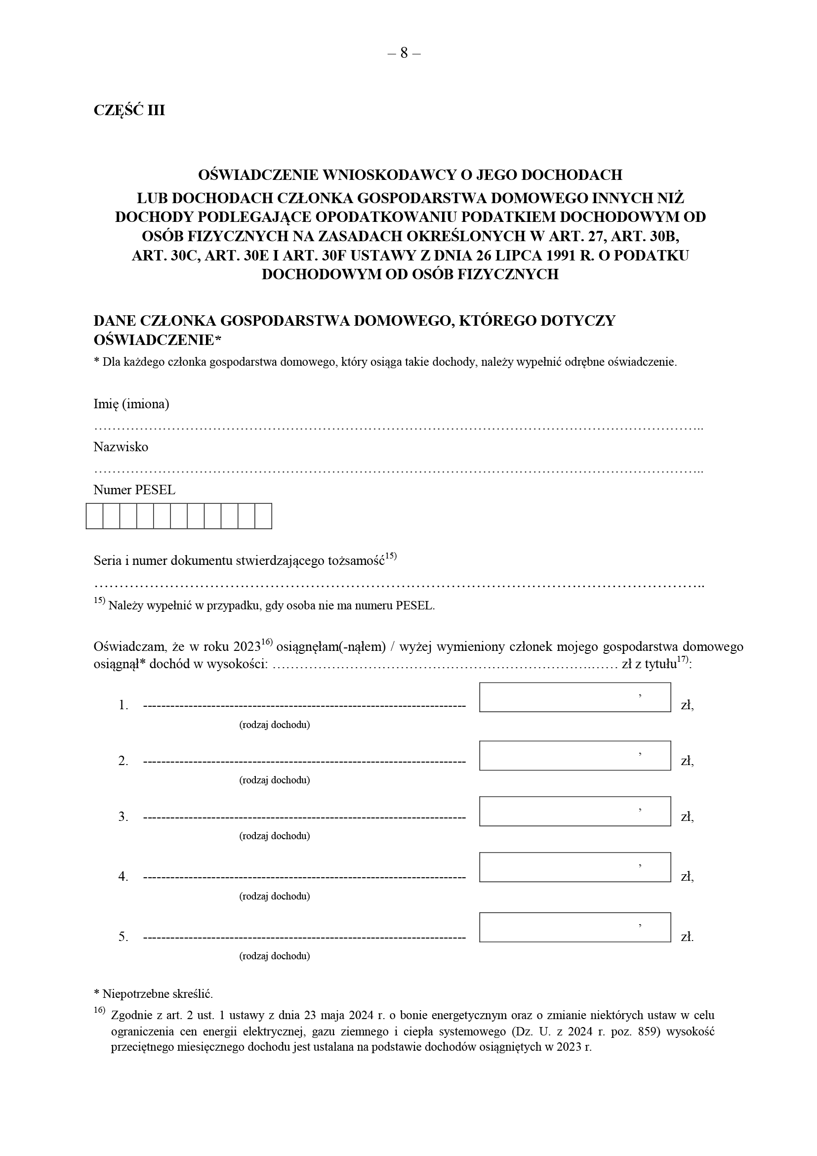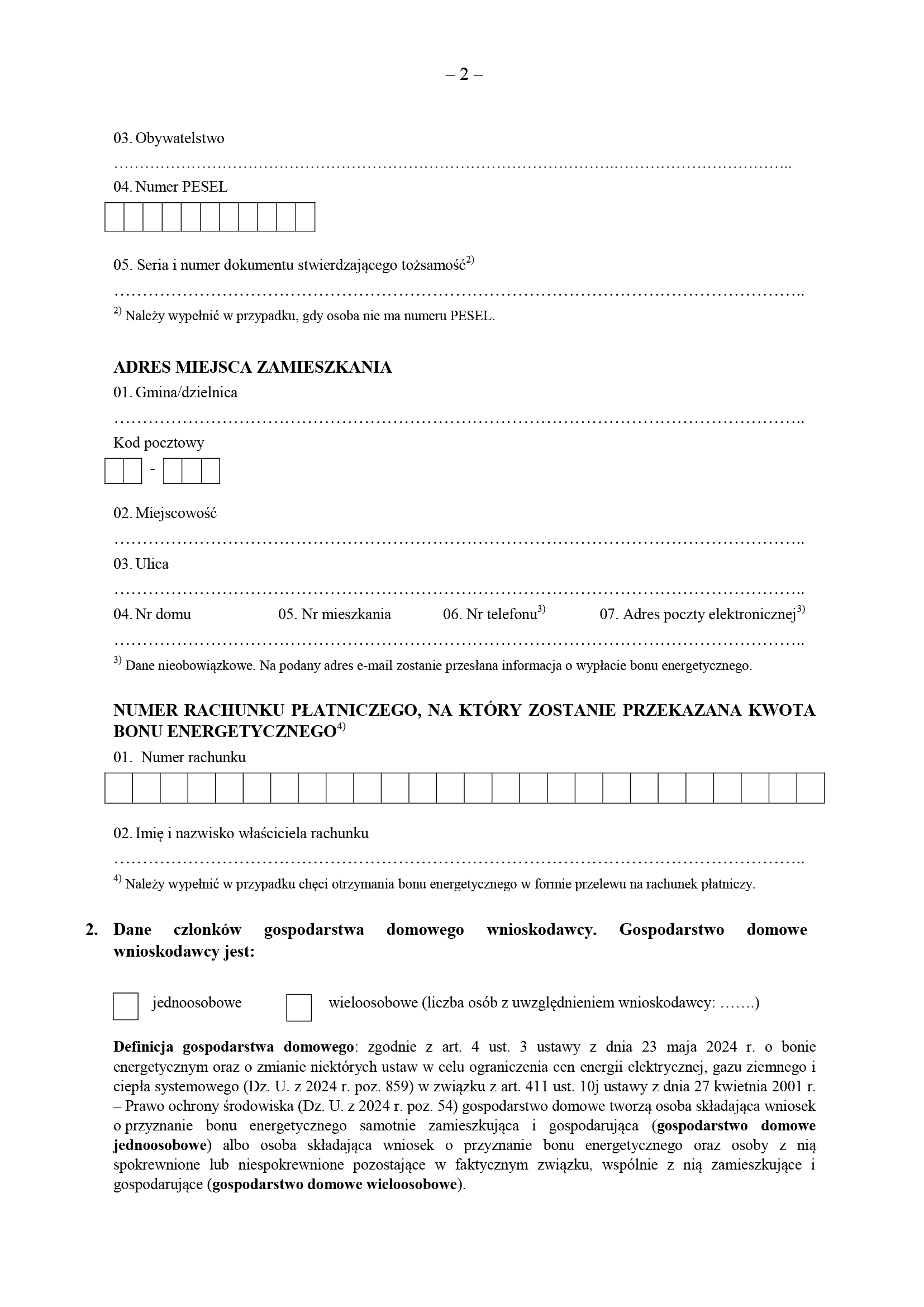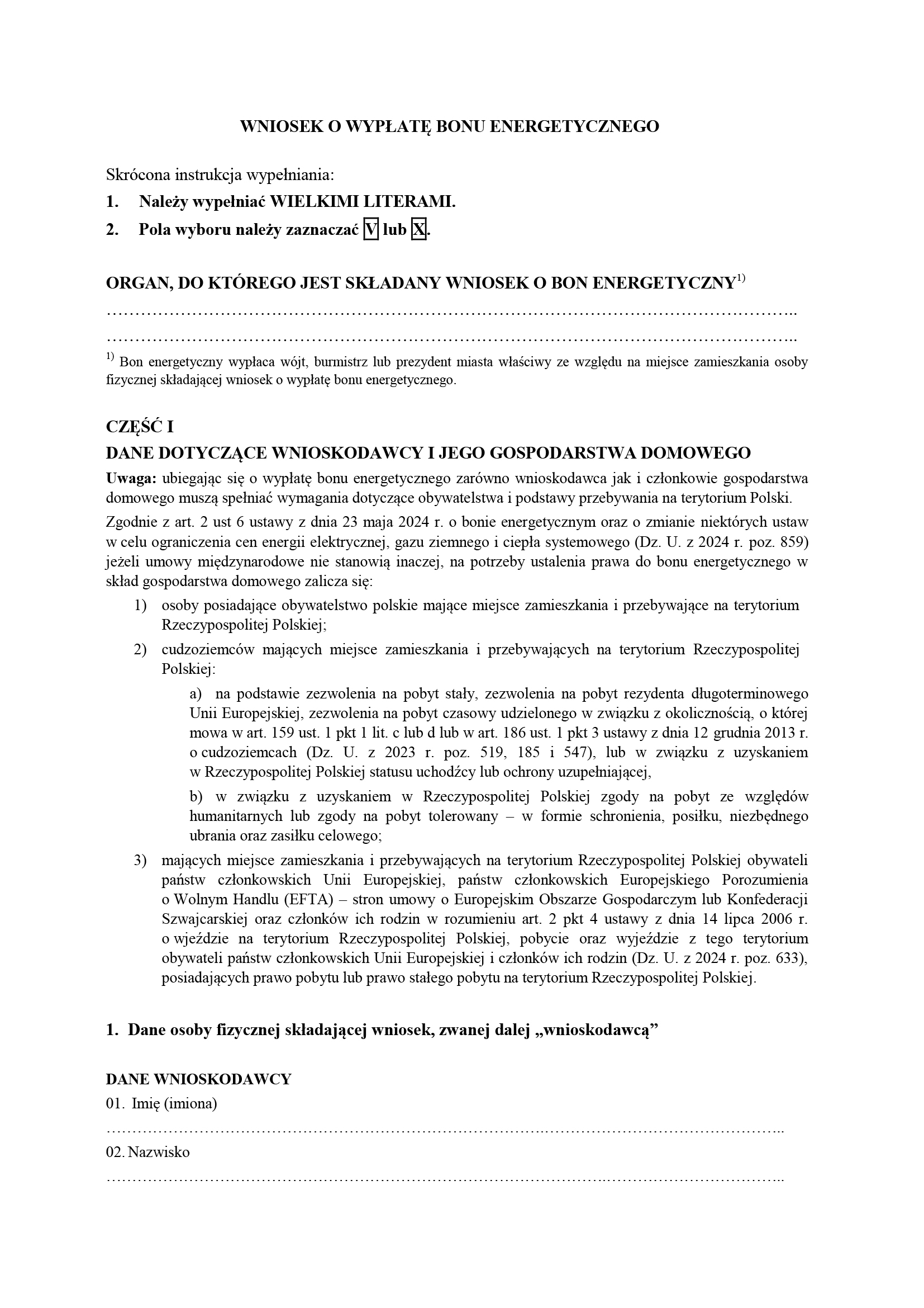 - Oficjalny druk: Nasz formularz jest zgodny z art. 3 ust. 7 ustawy z dnia 23 maja 2024 r. o bonie energetycznym oraz o zmianie niektórych ustaw w celu ograniczenia cen energii elektrycznej, gazu ziemnego i ciepła systemowego.