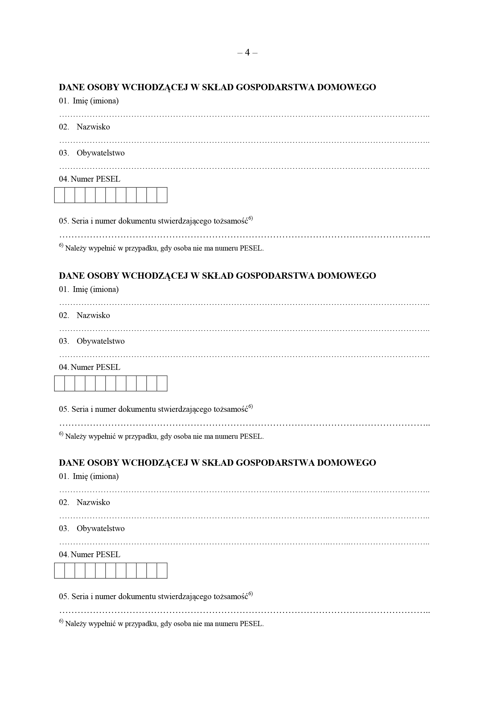 - Opakowanie 1szt zawiera 1 kompletny wniosek (3 kartki A3 zgięte w pół- druk 11 stron).