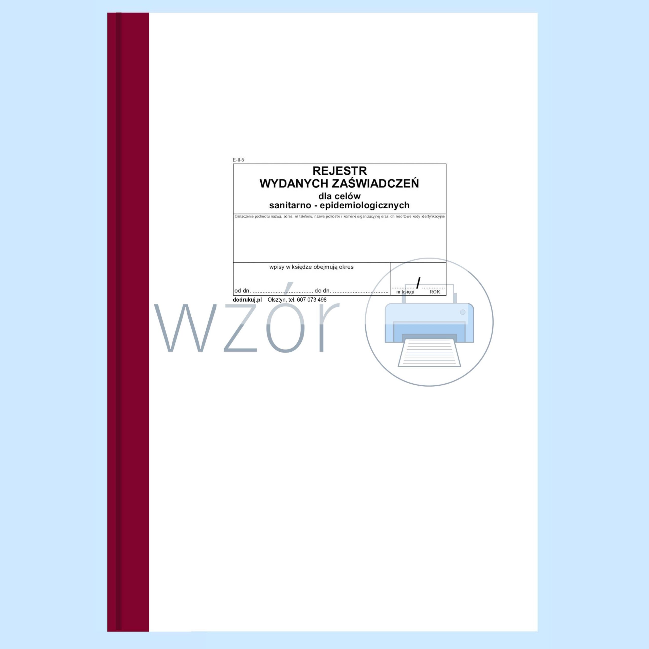 E-II-5 Rejestr wydanych zaświadczeń dla celów sanitarno – epidemiologicznych.