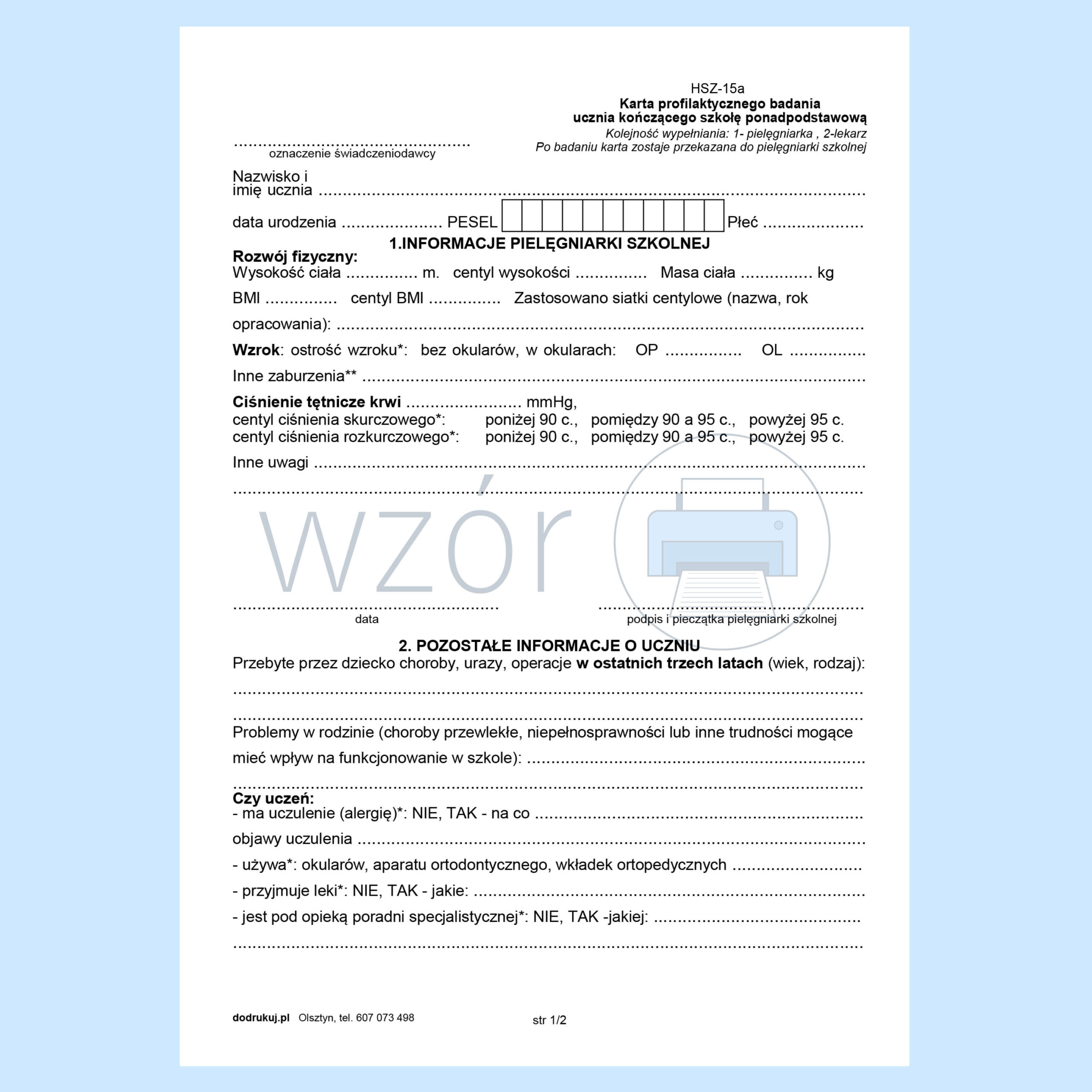 HSZ-16 Karta profilaktycznego badania ucznia kończącego szkołę ponadpodstawową.