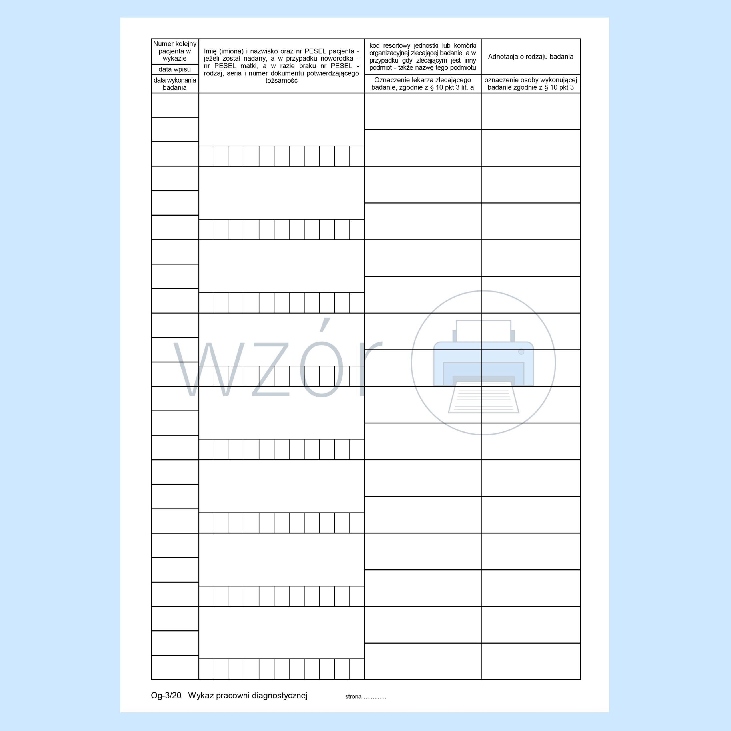 Og-3/20D Wykaz Pracowni diagnostycznej.