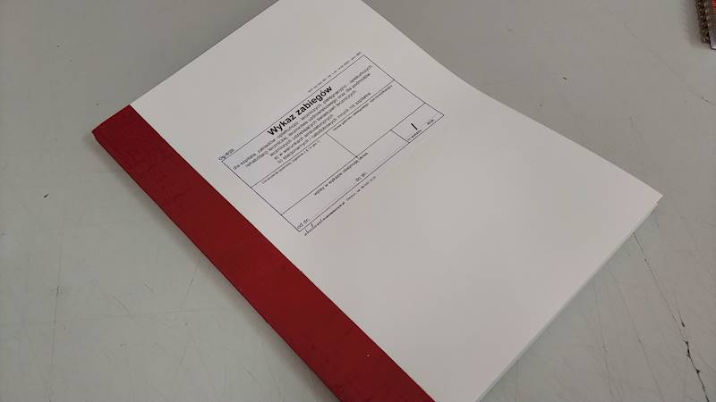 Druk dwustronny identyczny na papierze offsetowym 80g/mformat A4, 80 kartek. Okładka – karton, całość zszyta.