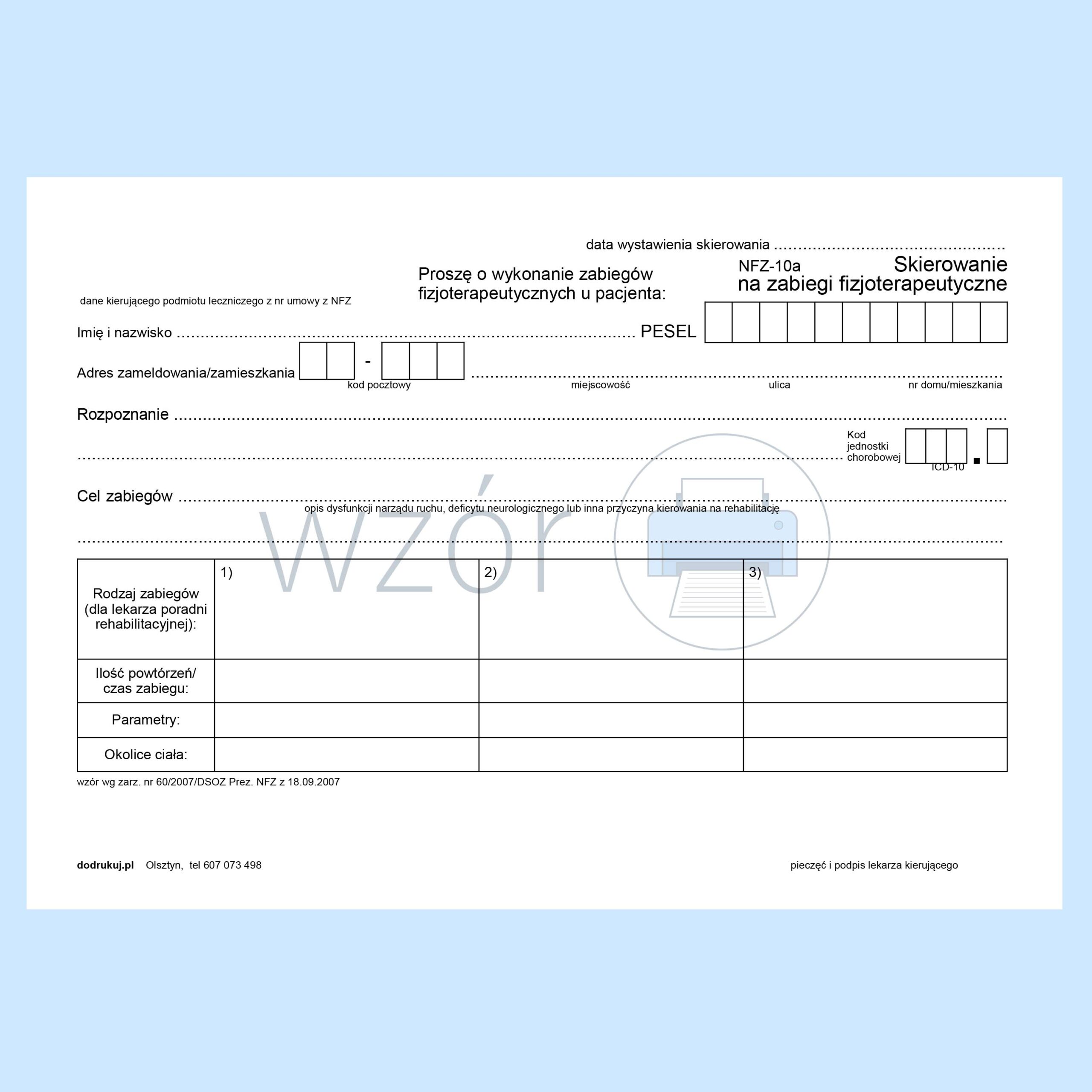 NFZ-10a Skierowanie na zabiegi fizjoterapeutyczne.