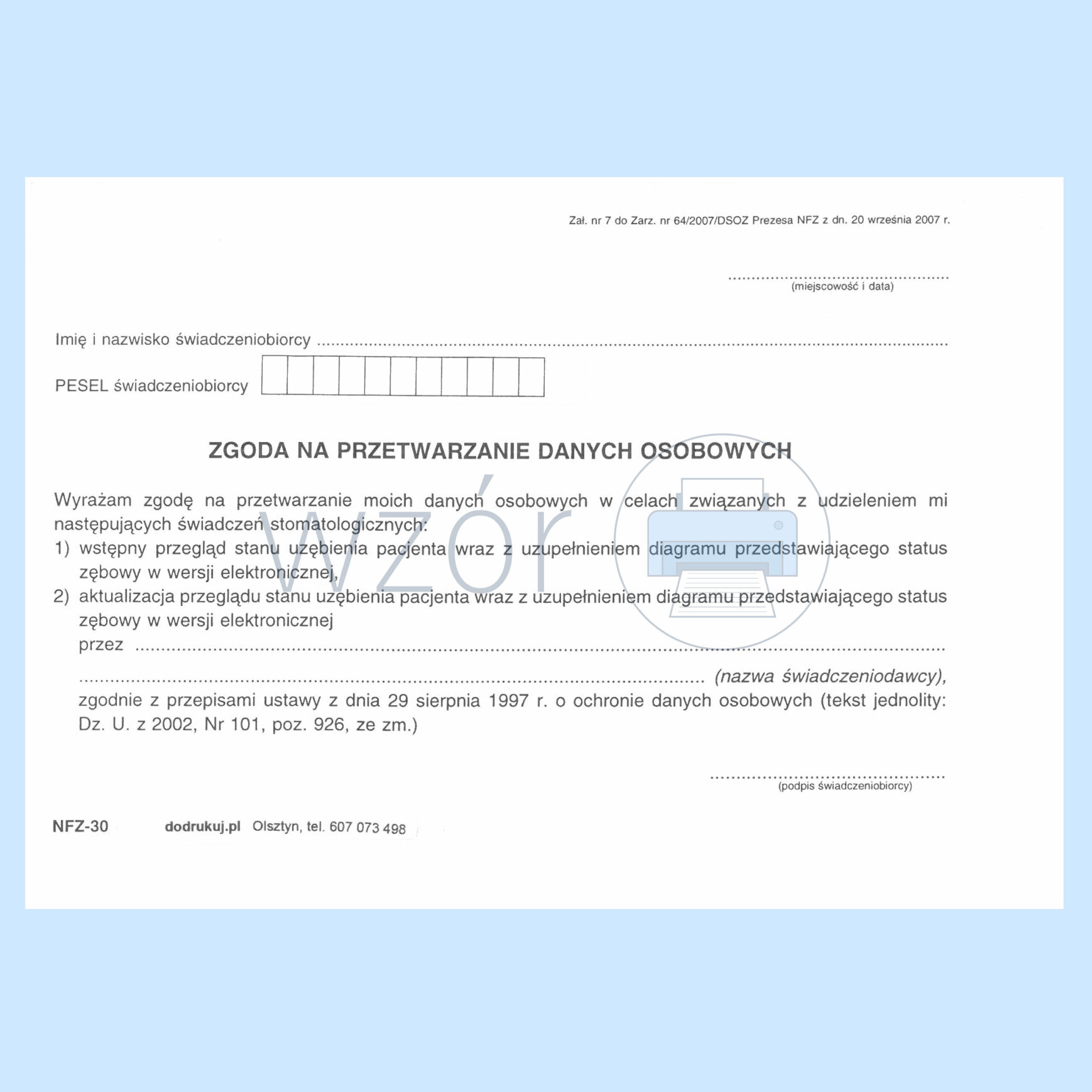 NFZ-30 Zgoda na przetwarzanie danych osobowych.