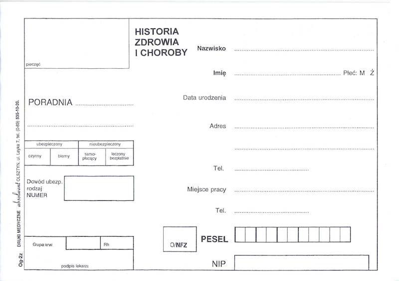 OG-2Z Historia zdrowia i choroby Ambulatorium.