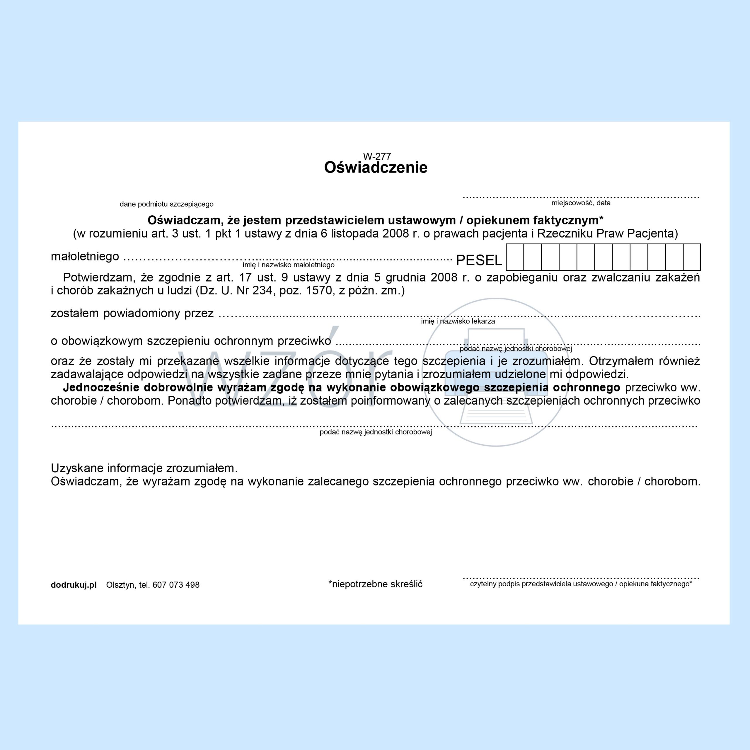 W-277 Oświadczenie – szczepienia – ZGODA A5a/bl.100k