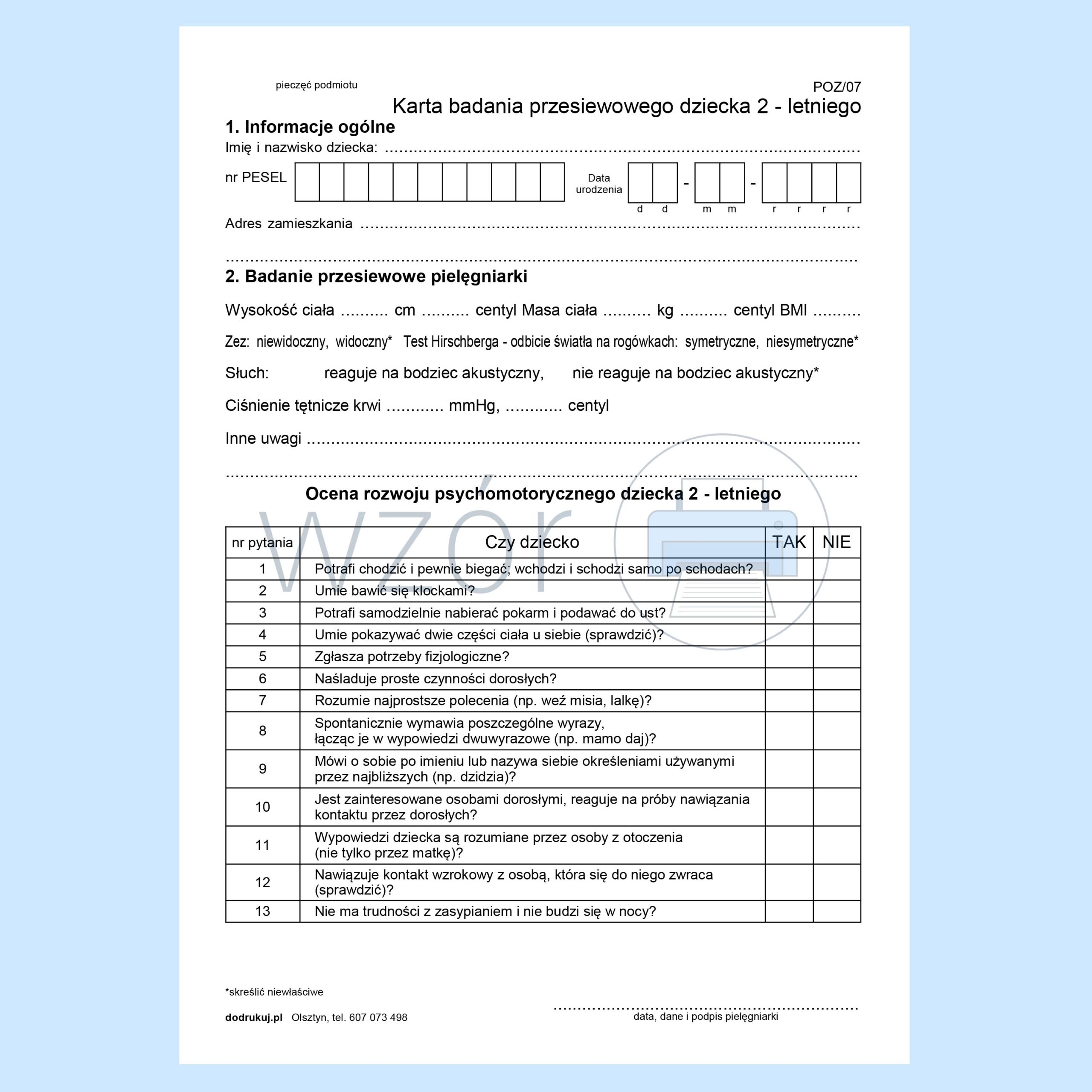 POZ/07 Karta badania dziecka 2-letniego (Pielęgniarka).