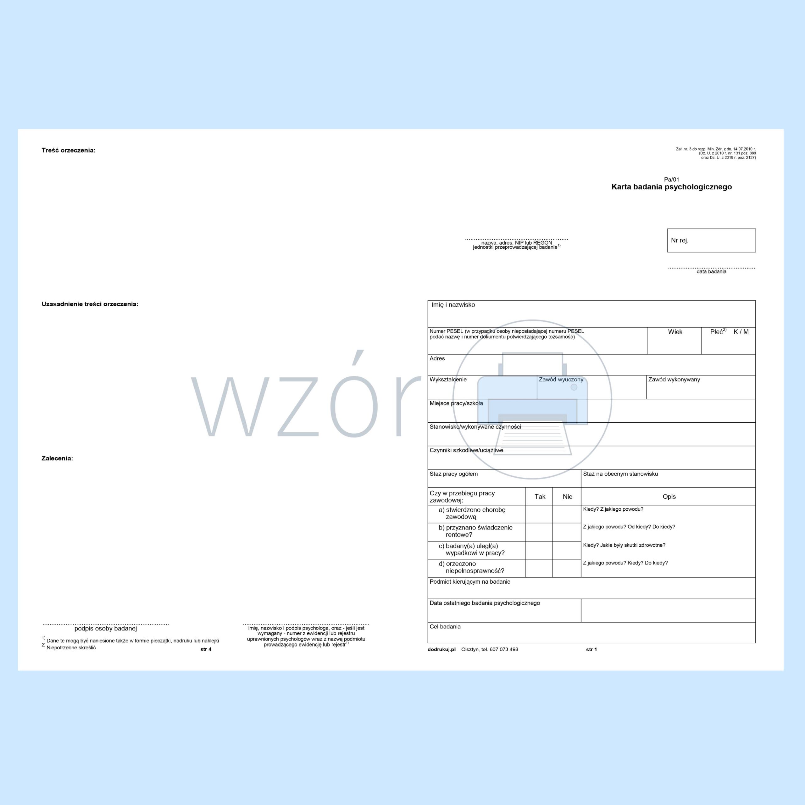 PA/01 Karta badania psychologicznego (Medycyna Pracy) 2xA4c/100szt