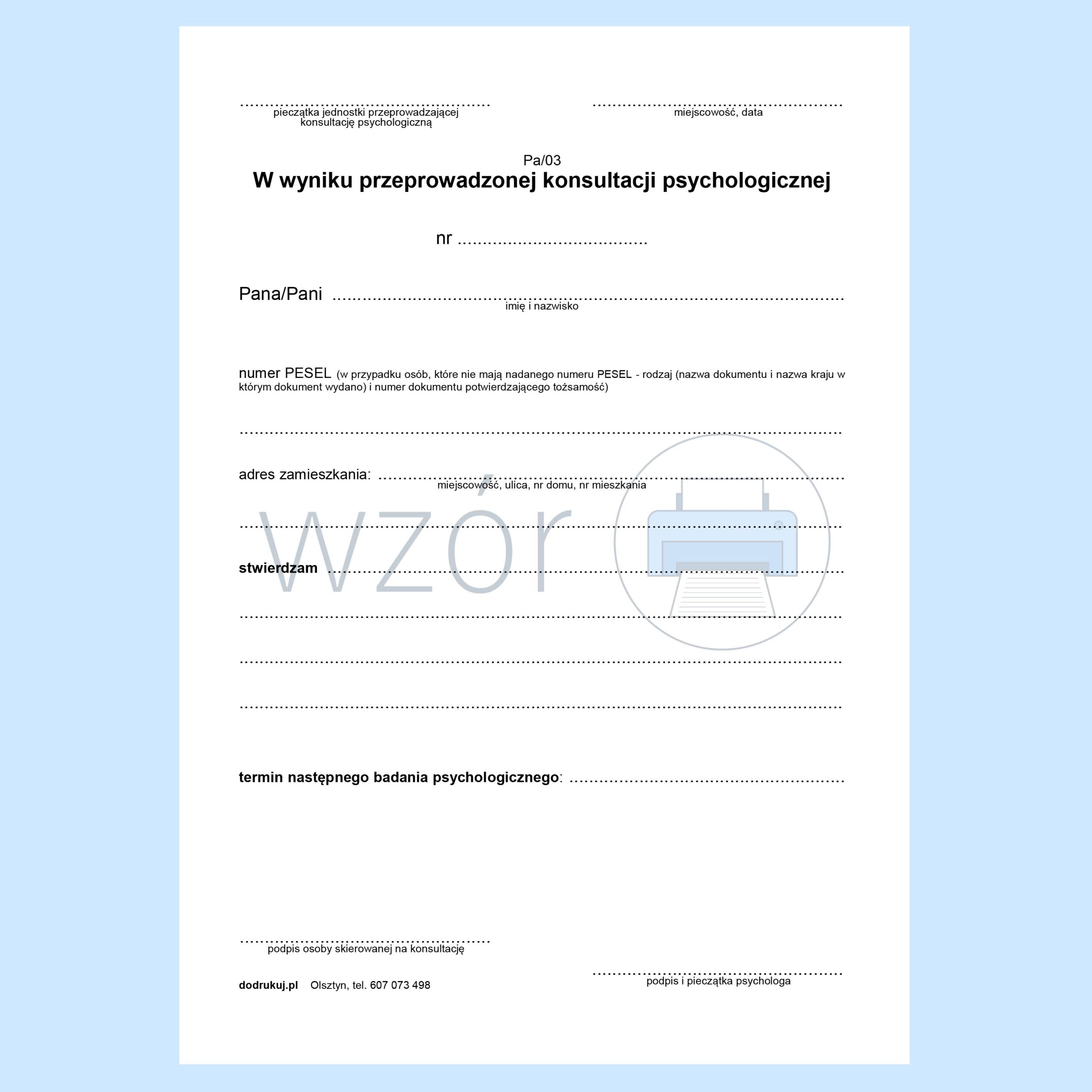 Pa/03 Konsultacja Psychologiczna – Ogólna.