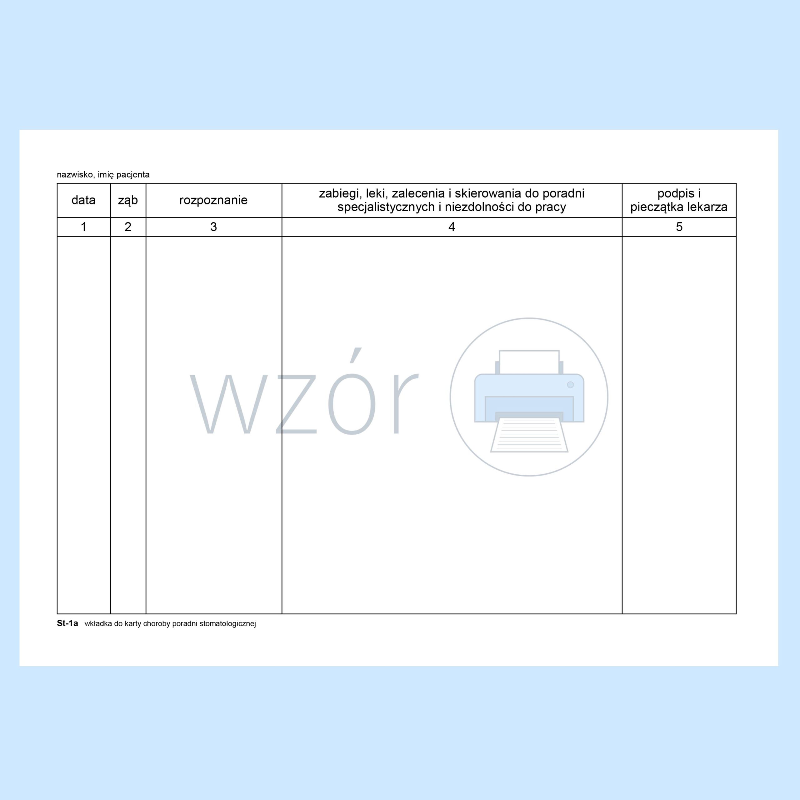 ST-1A Wkładka do Historii zdrowia i choroby poradni stomatologicznej (ST-1).