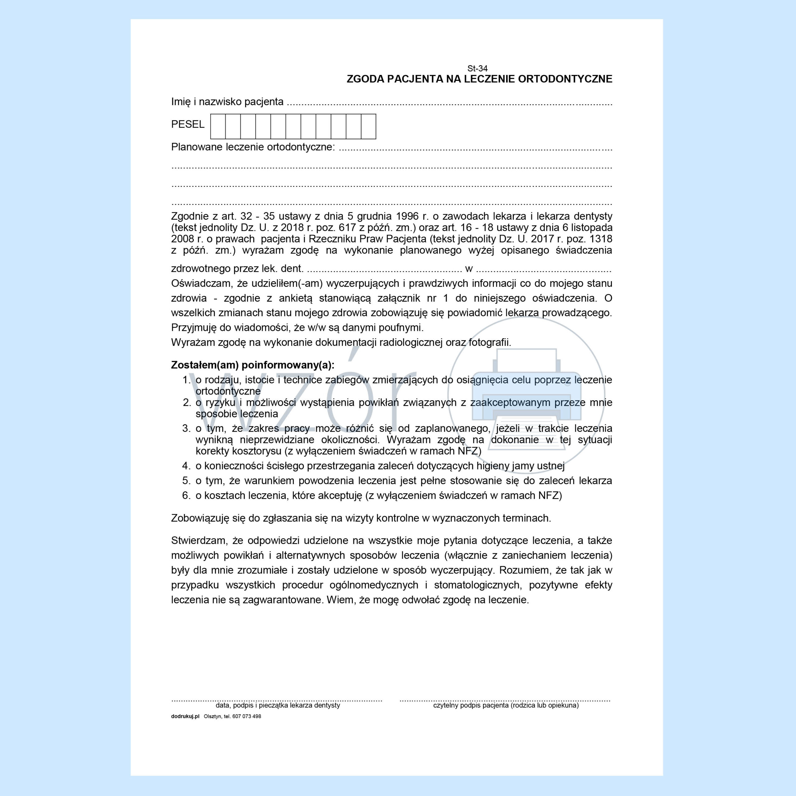 ST-34 Zgoda pacjenta na leczenie ortodontyczne.