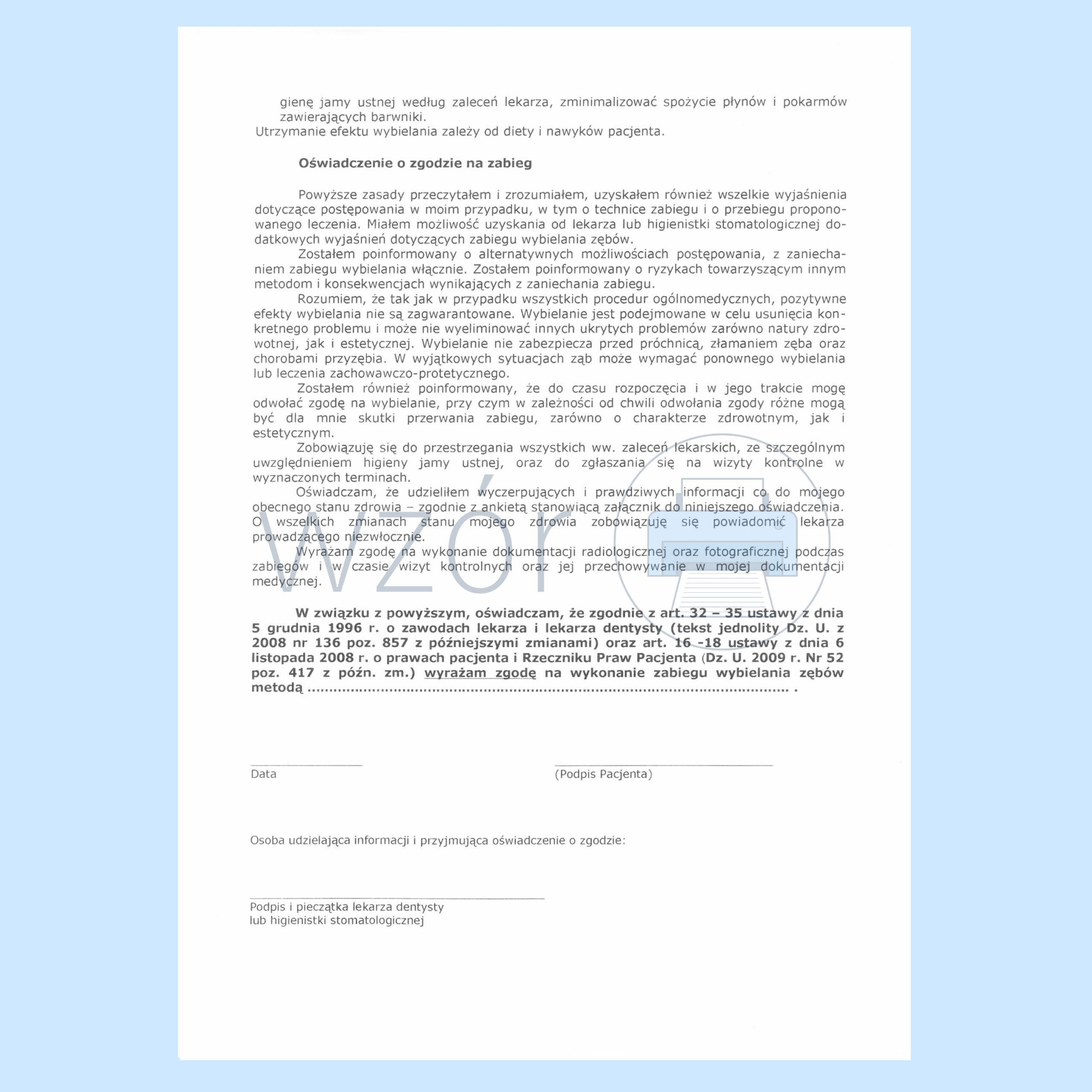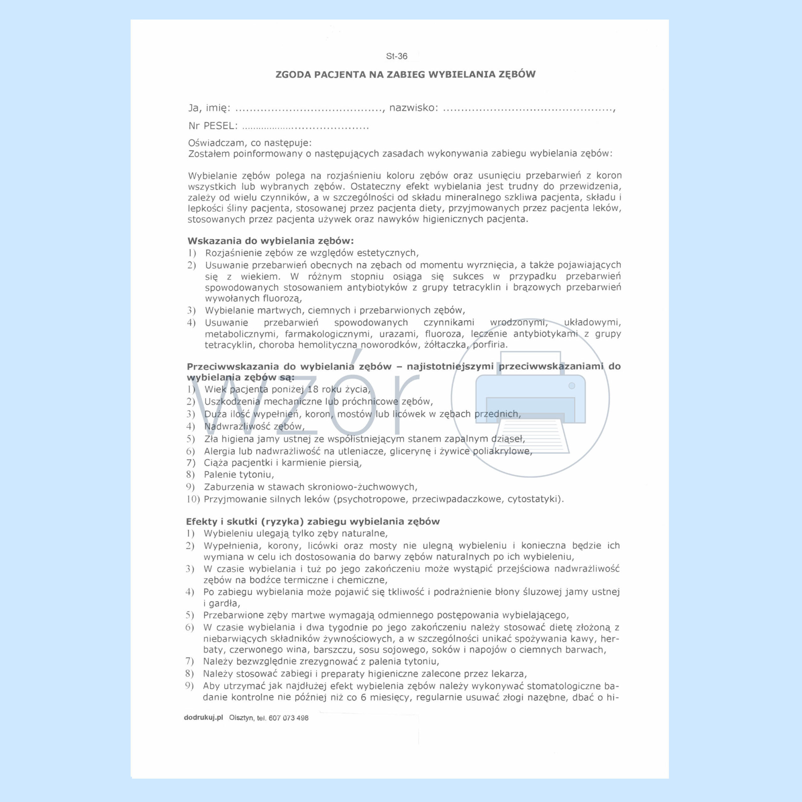 ST-36 Zgoda pacjenta na wybielenie zębów.