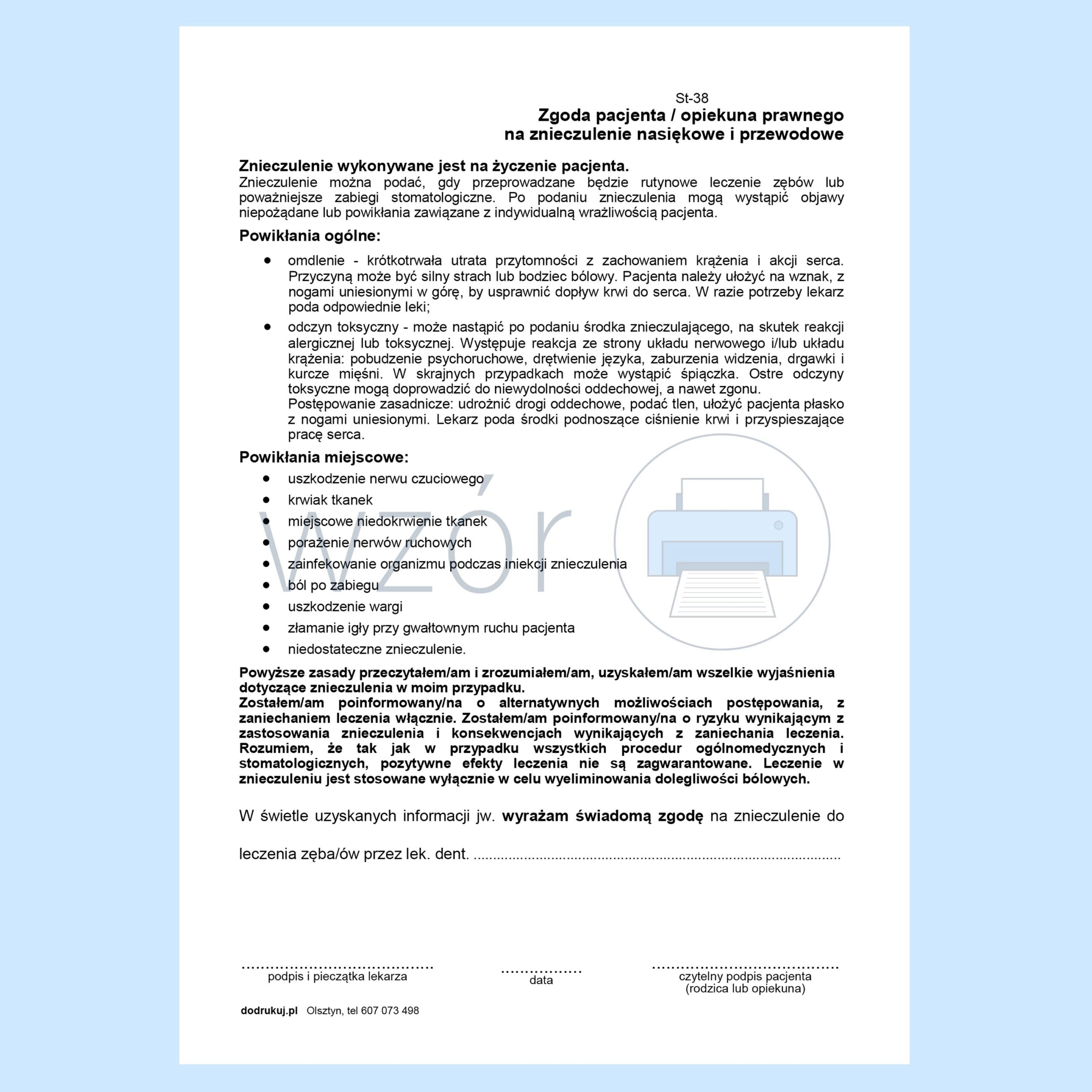 St-38 Zgoda na znieczulenie stomatologiczne.