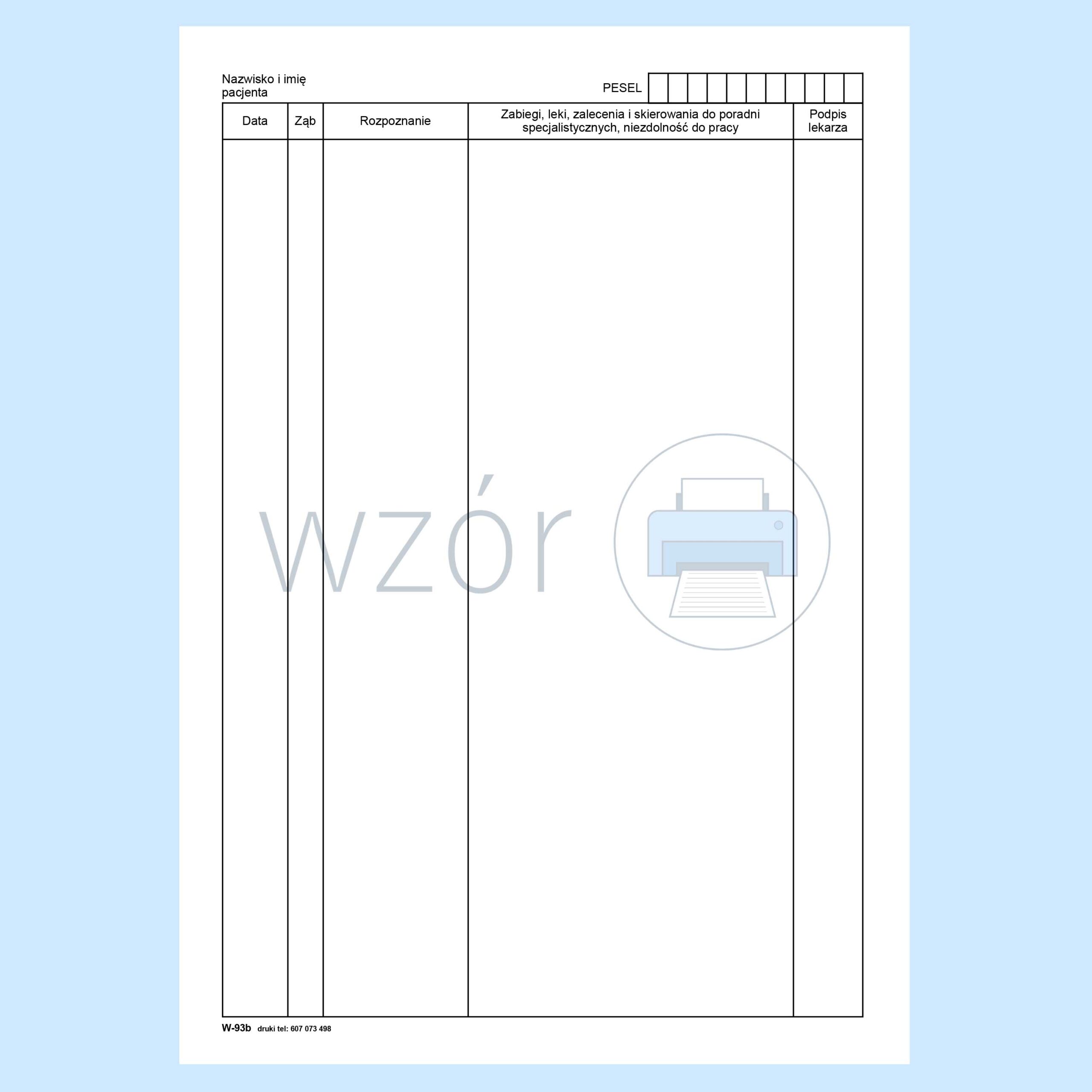 W-93B Wkładka do karty stomatologicznej (wkładka do W-93a).