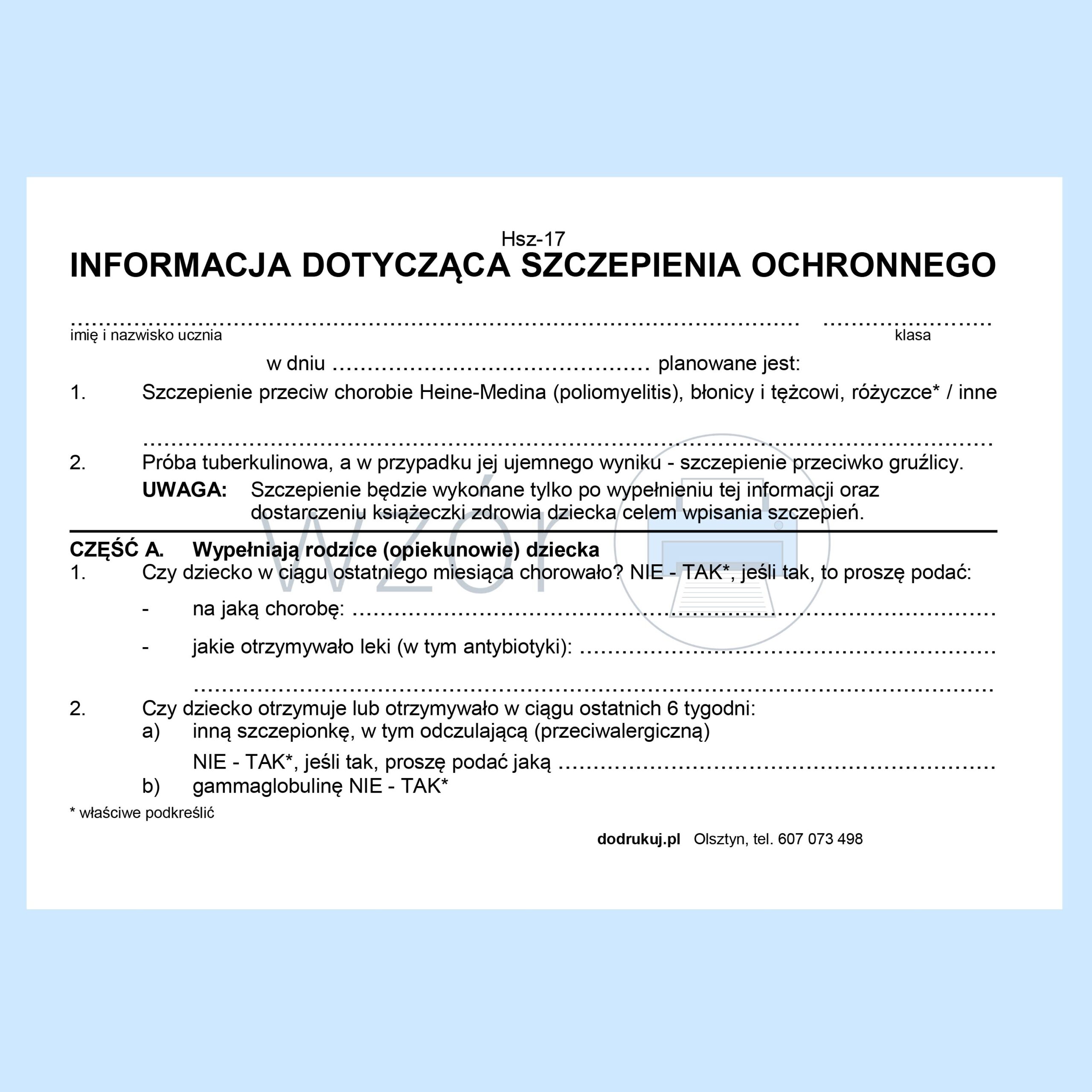Mz/Hsz-17 Informacja dotycząca szczepienia ochronnego.