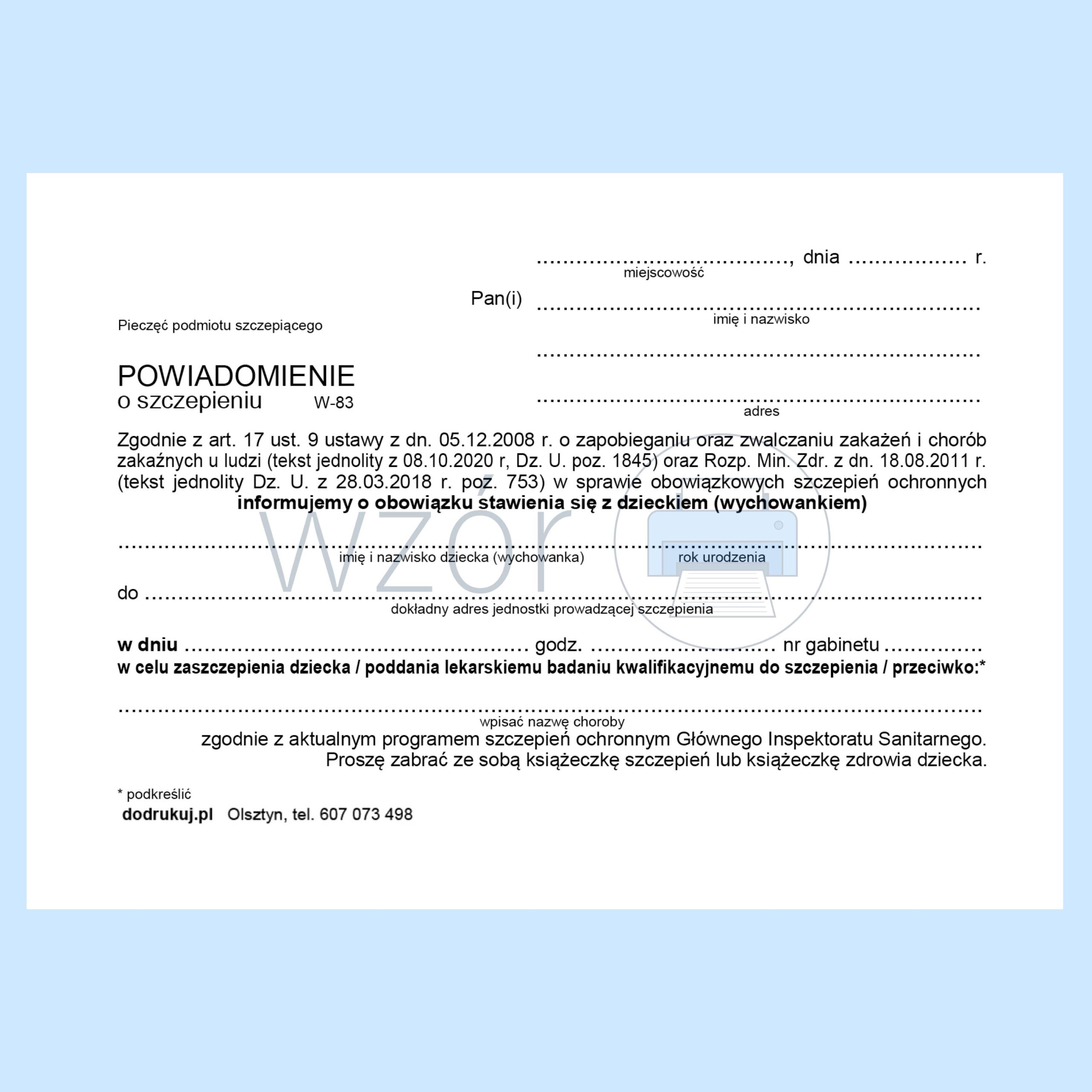 W-83 Powiadomienie o szczepieniu.