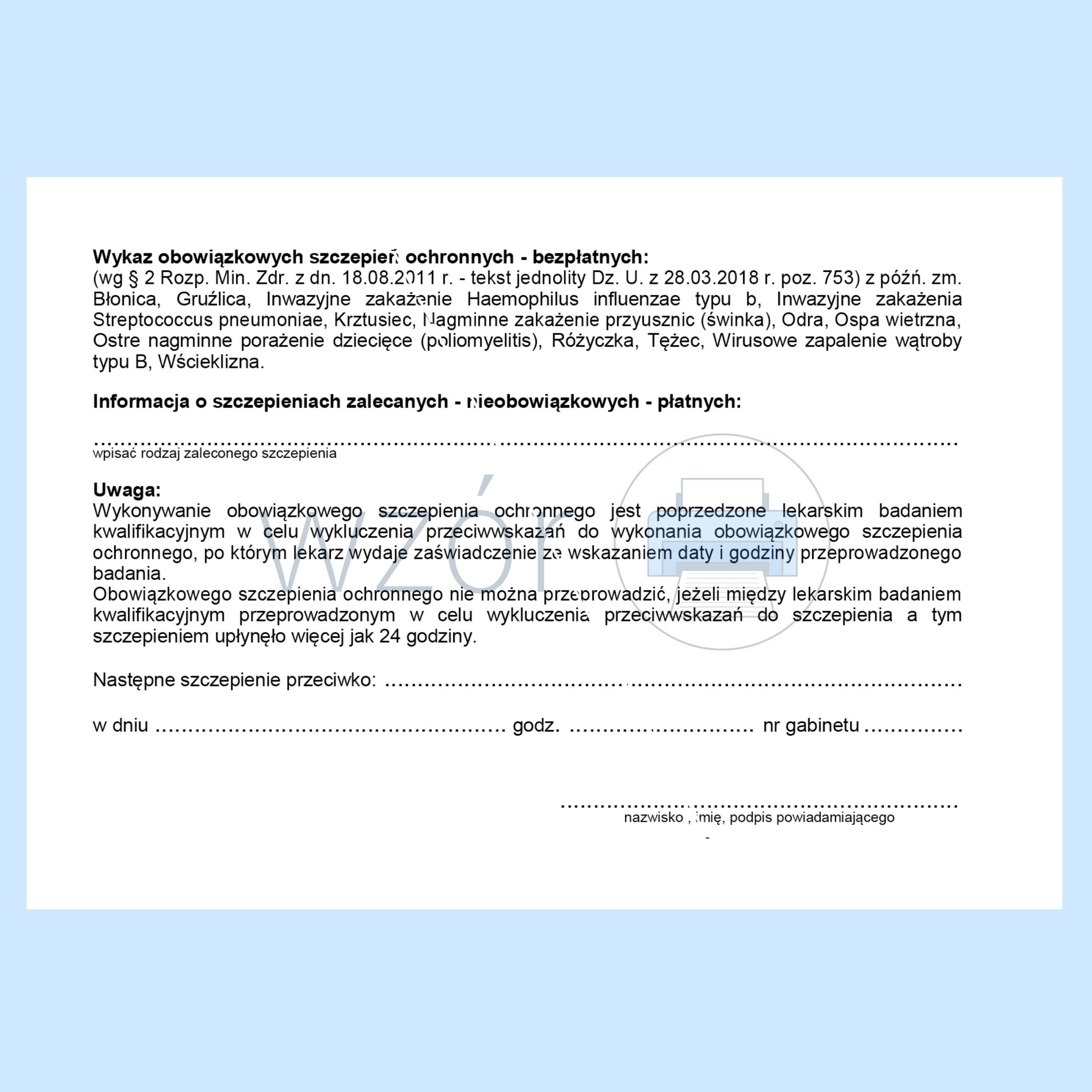 W-83 Powiadomienie o szczepieniu A6c/bl.100k